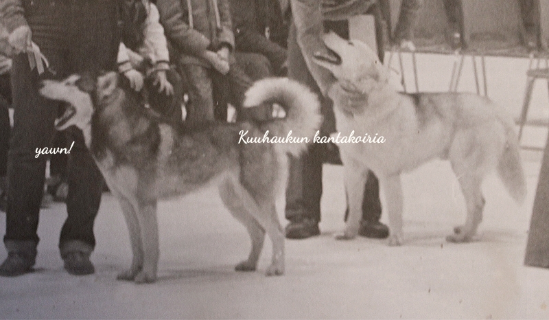 70-luvulla syntyneitä Kuuhaukun kantakoiria, molemmat valioita.