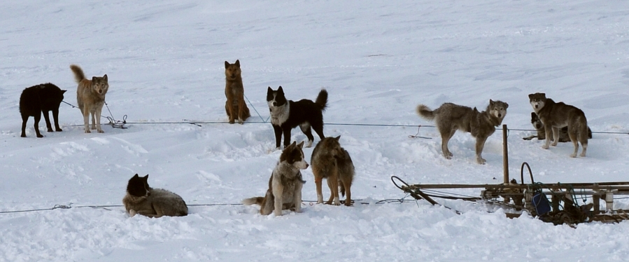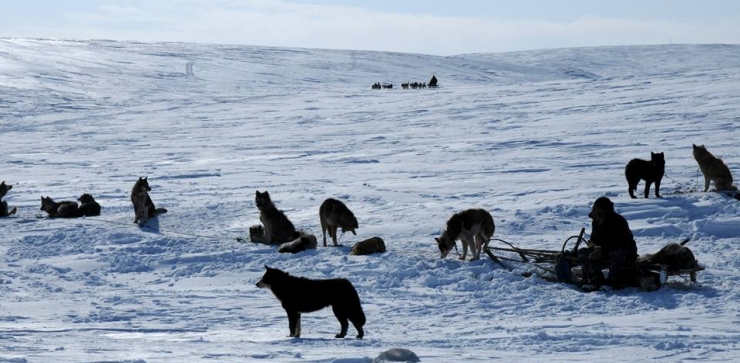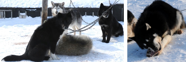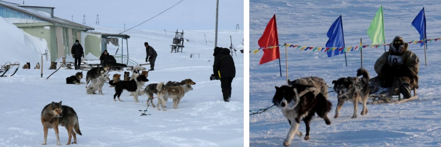 pidättyväisyys kuuluu koirien piirteisiin. Kuvassa oikealla siperialainen kilpavaljakko, ajaja perinteisessä nartta-reessä.