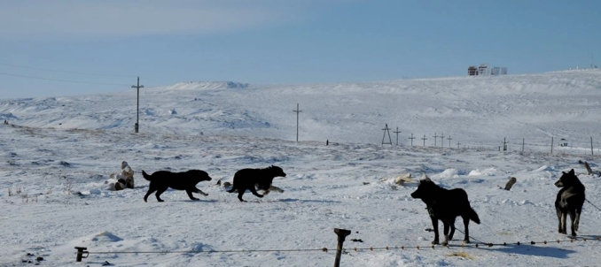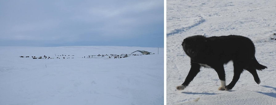 tundralla. Kilpailuissakaan koirilla ei ole edes olkia suojana, koska oljet katoaisivat tuulen mukana tundralle.
