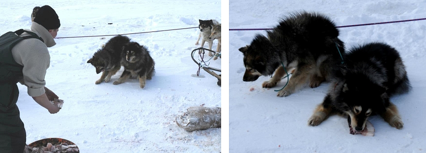 Vaikeissa olosuhteissa työskentelevän koiran on saatava paljon lihaa ja rasvaa pysyäkseen itse hyvässä kunnossa.