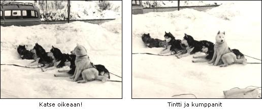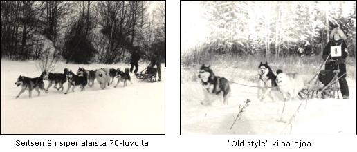 Tällä sivulla on kuvia vanhoista suomalaisista siperianhuskyista rekikoirina. Kuvista näkee hyvin koirien tyypin ja olosuhteet, joissa koirat työskentelivät. Kiinnitä huomiota esim. rekiin ja niiden kuormiin.