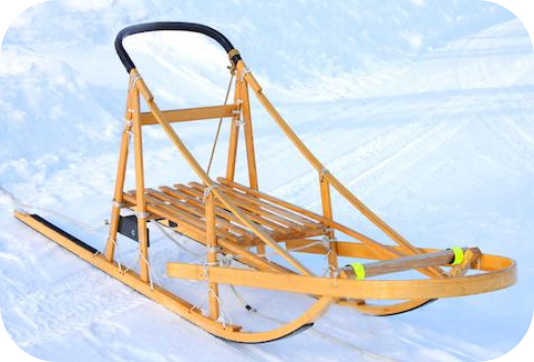 Oma ensirekeni on vanhanmallinen basket-kilpareki. Olen koonnut ja sitonut sen itse narusidoksin. Olen myös lisännyt siihen vaihdettavat muovijalakset ja suunnitellut poljettavan jarrun, jossa on vaihdettavat metallipiikit. Koria olen jatkanut naruristikolla (näkyy kuvassa yllä), jolloin tilaa kuormalle on enemmän myös reen etuosassa. Olen itse tehnyt myös vedenkestävän rekipussin. Kevyet tavarat kuten vaatteet, makuualusta ja -pussi pakataan naruristikon päälle etuosaan. Painavammat tarvikkeet kuten teltta, keittimet jne. pakataan puisen korin päälle reen takaosaan. Ahkiokassit (kuvassa) ovat erinomaisen kätevät reessä, jolloin tarvikkeet on helppo nostaa telttaan/tupaan. Kirkkaan värisiä ahkiokasseja voi käyttää myös merkinantoon. Etualalla kuvassa suosittu ahkiomalli ihmisen käyttöön tarkoitetuilla aisoilla.